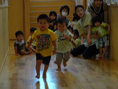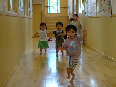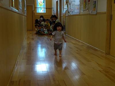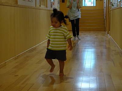 今日のつくしさんは、廊下でかけっこをしましたよ。