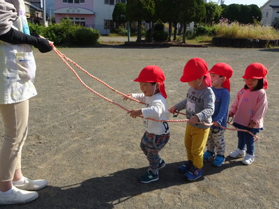 電車ごっこが始まりました。