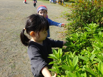 「せんせい、はっぱ、いっぱいある~」