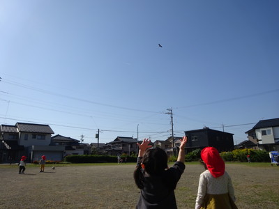 空を飛ぶ飛行機や鳥をみつけて手を振っているつくしさん。