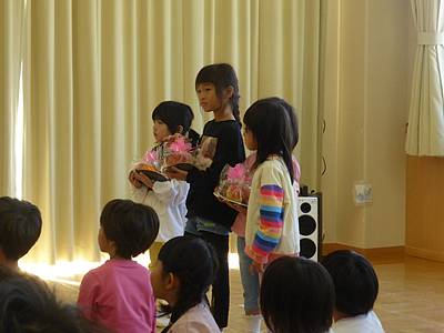 午後は、ゆり組さんがみんなの持ち寄った果物やお野菜を、普段お世話になっているご近所さんや郵便局の方達に届けてくれました。感謝の気持ちを伝えることができました☆