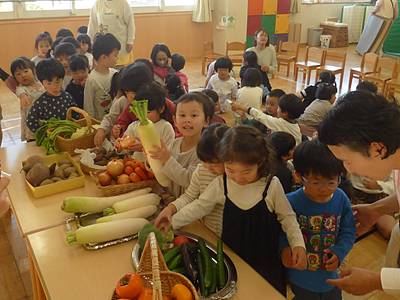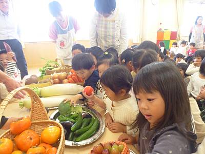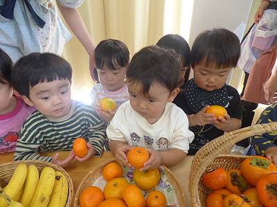 大事そうにみかんを持って登園する子や、お顔よりも大きなサツマイモを抱えながら嬉しそうに登園する子どもたちの姿も見られました(^^)