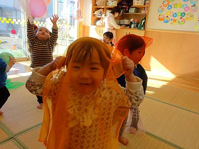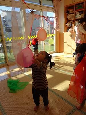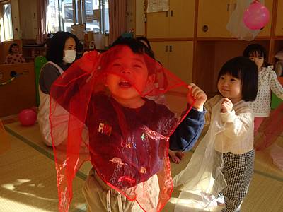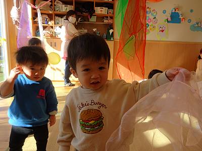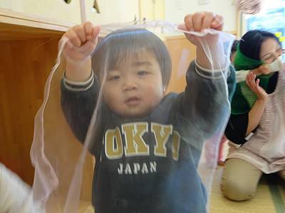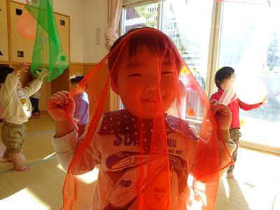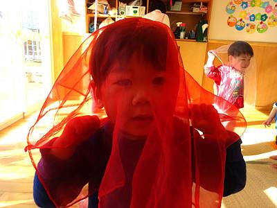 先日、シフォンスカーフを使って遊びました。