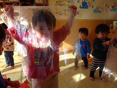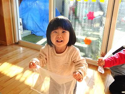ヒラヒラ軽くて、向こうが透けて見えるのがおもしろいね。