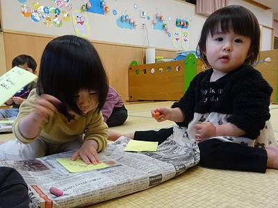郵便ごっこで、だいすきなお父さんお母さんにお手紙を描きました。