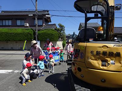 ♪のりものあつまれ〜いろんなくるま〜♪の歌を口ずさんだり、リズムにのって身体を揺らす子、