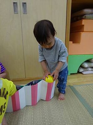 ギュッと力を入れてボールを次々と入れる姿は真剣そのもの!夢中になって遊んでいますよ♪