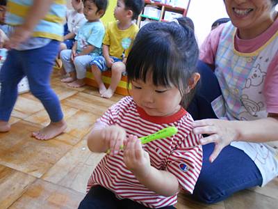 自分で磨いた後は先生が仕上げ磨きをします♪