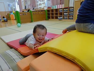 ハイハイプレイを登ったり、マットを掛けておやま登りをしたり♪