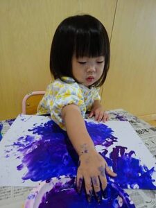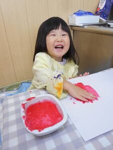 絵の具の感触が面白くて、笑顔になっちゃうね♡