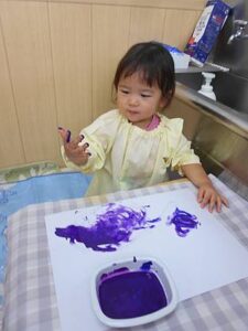 絵の具の感触が不思議で何度も見ていました(*^-^*)
