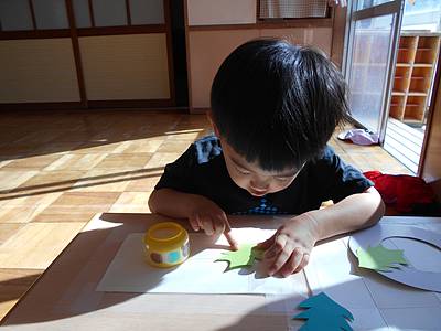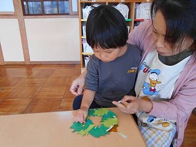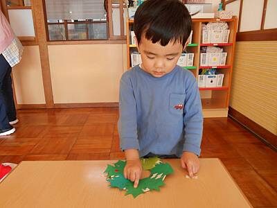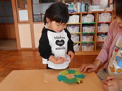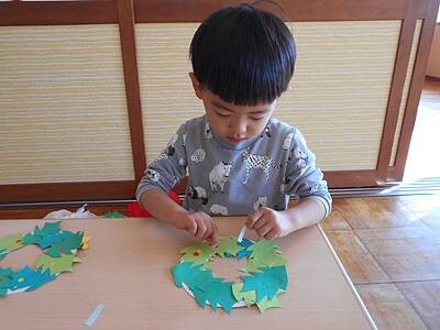 模様のシールも貼って可愛らしいリースが出来上がりました。