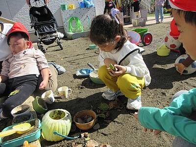 晴れている日には外で体を思いきり動かしたり、お砂遊びを楽しんだりして元気いっぱい過ごしています。小さな虫も上手に捕まえます👏