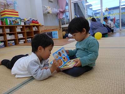 遊びに満足したお友だちは、くつろぎながら絵本タイムを満喫していました♪