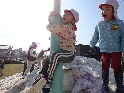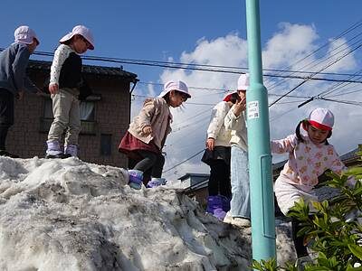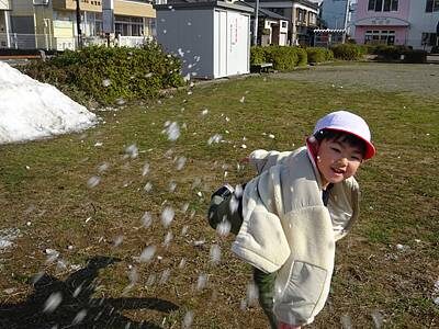 思い切り雪遊びできる日が待ち遠しい子ども達ですが、公園に残った雪山一つでもこんなに喜んで遊ぶことができる子どもたちはすごいな~と思います。身の周りにある小さな自然を大切に守っていきたいですね(*^^*)