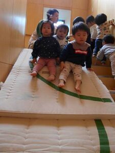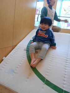 マットの赤いところから登ろうね!と伝えると、上手にそちらから登っていますよ!