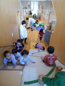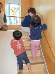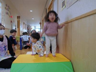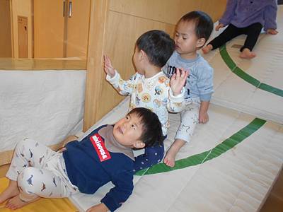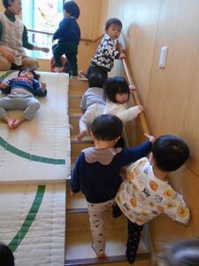 お部屋や廊下で体をいっぱい動かしているつくし組さん♪