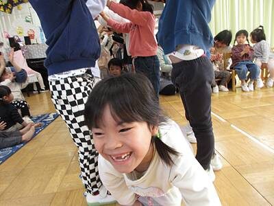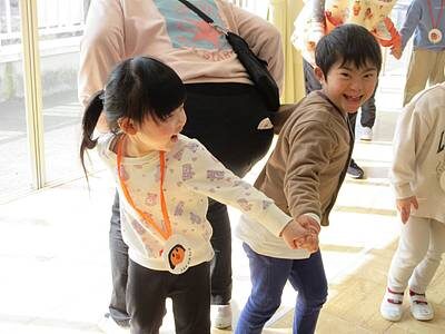 まずは、ばら組さん・ちゅうりっぷ組さんのアーチとたんぽぽ組さんのハイタッチでゆり組さんをお迎えしました!