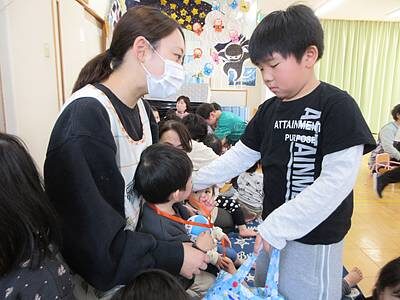 ふれあい遊びでは自分より小さなお友だちの手を優しく握ってあげる姿が素敵でした👏