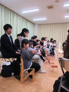 一緒に手あそびをしたり、お歌を歌ったり、お返事「は~い!」をしたり・・・