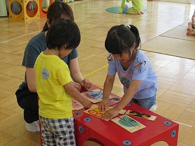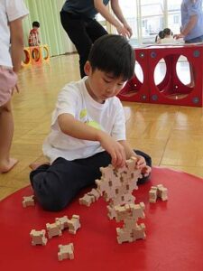 15種類ほどのおもちゃがあり、1人で没頭して遊んだり、少人数でわいわい楽しんだり、、、。また、そんな風にあそぶのかと感心するような遊び方をしたりと、先生が一緒に遊んでも楽しいし、子どもたちの遊ぶ様子を見ていても楽しい時間でした❤