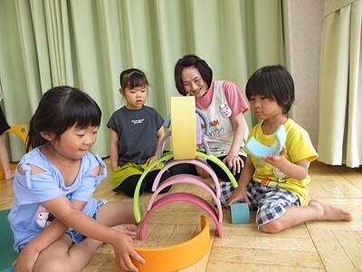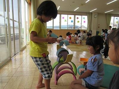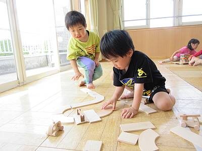 「ときなる」さんでお借りした木のおもちゃで、ちゅうりっぷ、ばら、ゆりさんが遊びました。