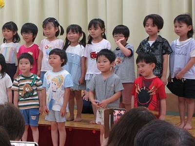 ばら組は「世界中の子どもたちが」の合奏を発表しました。