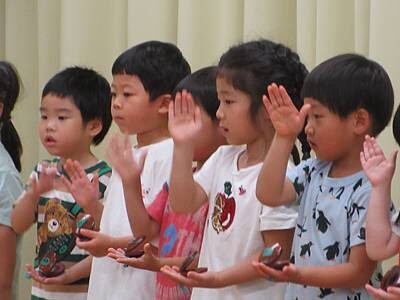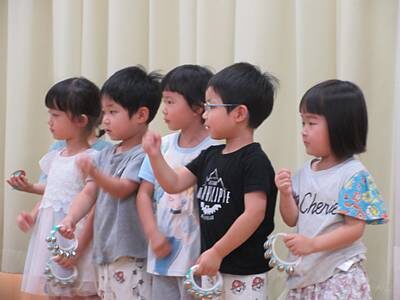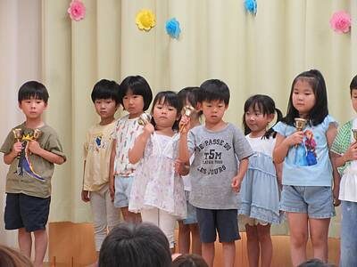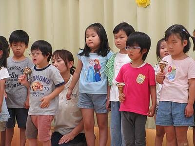 ゆり組は、ベルで「上を向いて歩こう」を演奏しました。