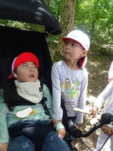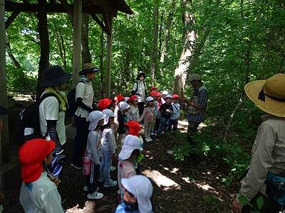 森の中で蜂と出会った時は、“姿勢を低くして静かに通り過ぎるのを待つ”という話を聞き、みんなで練習してみました。小さな生き物と共に過ごす環境の中でのとても大切な知恵ですね🌟