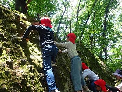 大きな岩の崖のぼりをしたり…