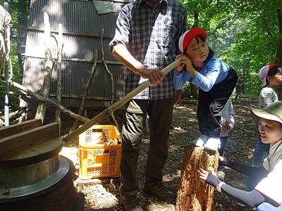 そしてなんと、木を切り倒す体験もさせてもらいました。