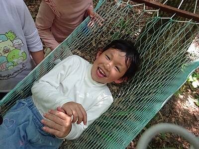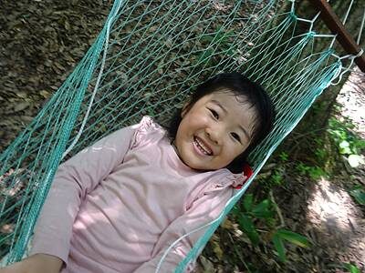 ご飯の後は、ハンモックで遊んだり