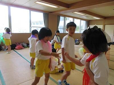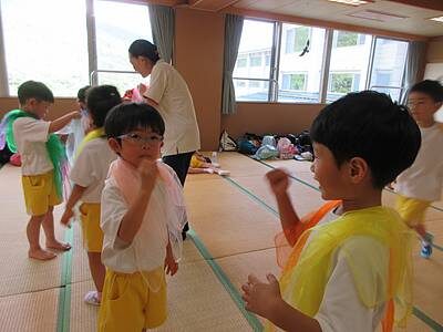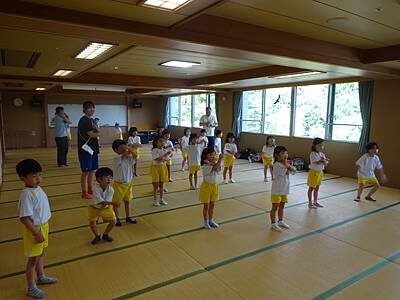 暑さを考慮し、子どもたちの様子を見て館内でも過ごしました。