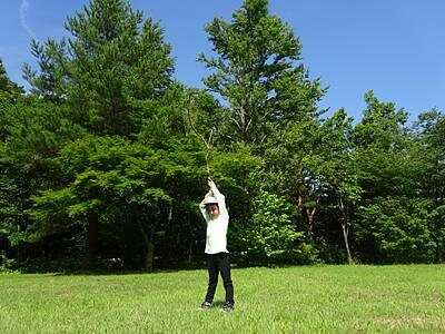 「葉っぱいい匂い~」っと、草笛をしてみたり!