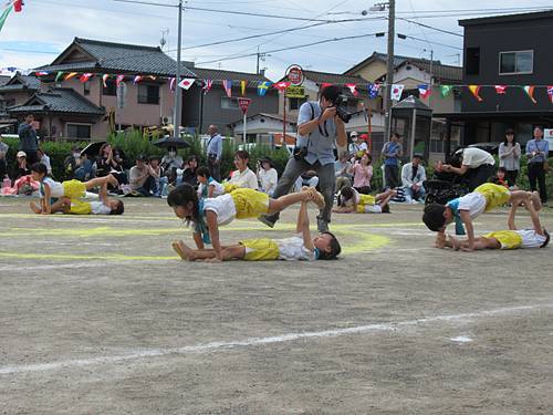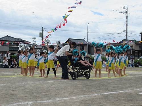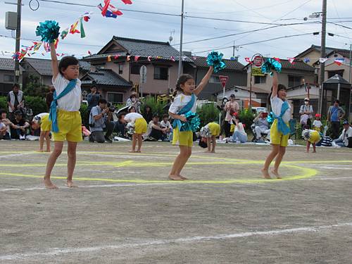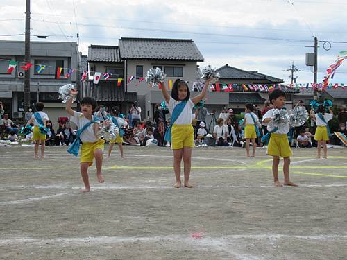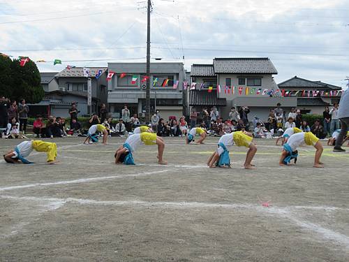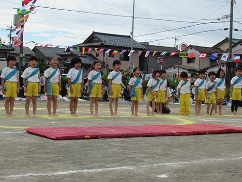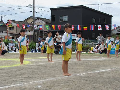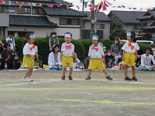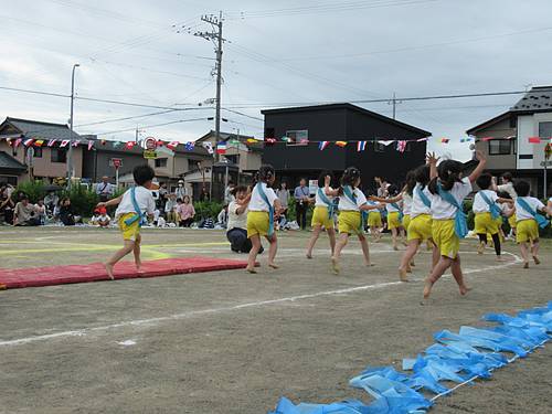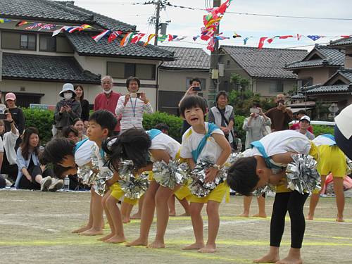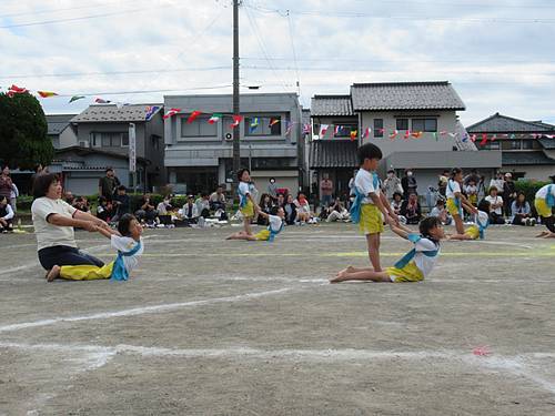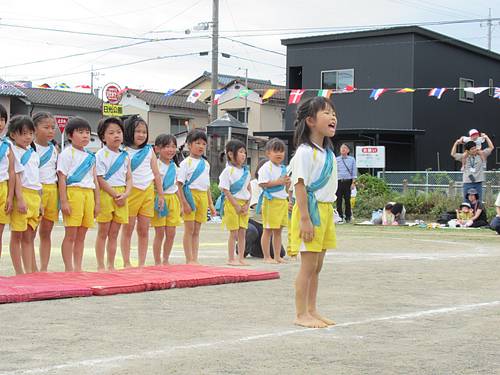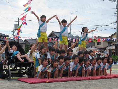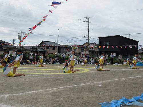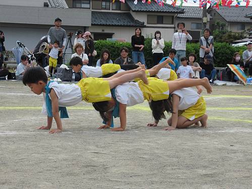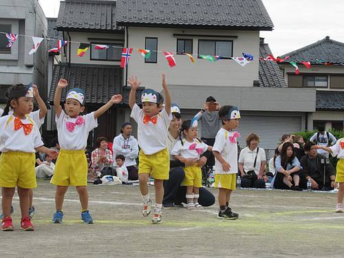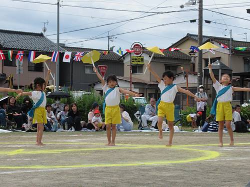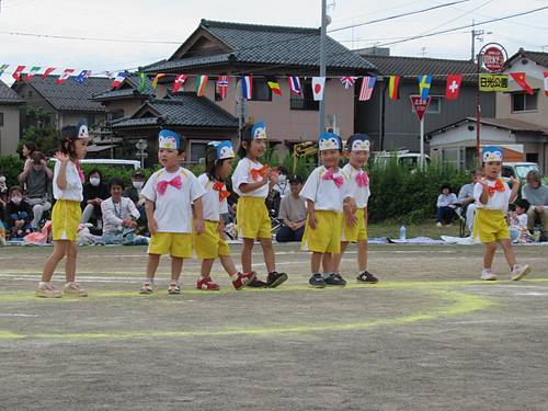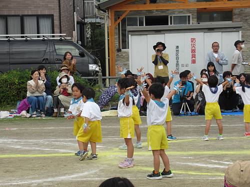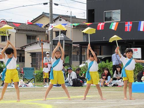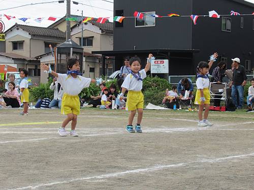 ゆりぐみさんは、ダンスと組体操の演技をしました。