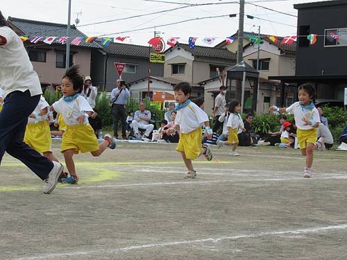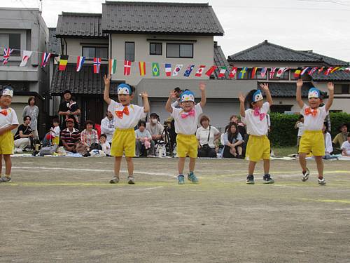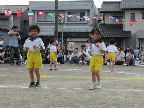 ばら組さんのダンスは、♪やっぱノリノリ~! ぐるぐると腕を回したり、にこにこ走ったりする姿が元気いっぱいのばら組さんピッタリ!なリズムダンスでした。