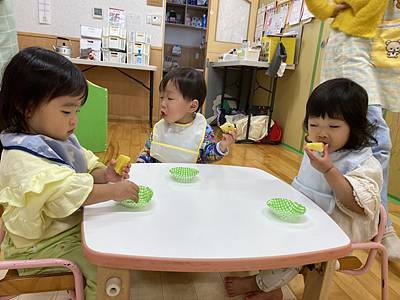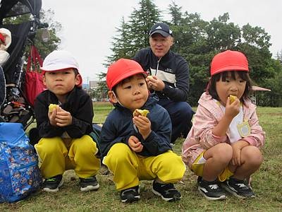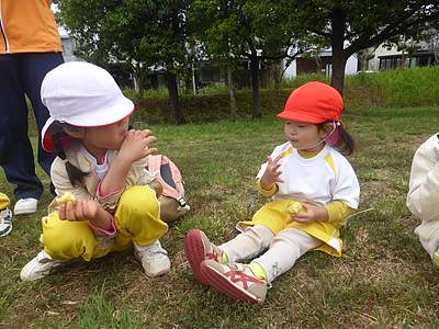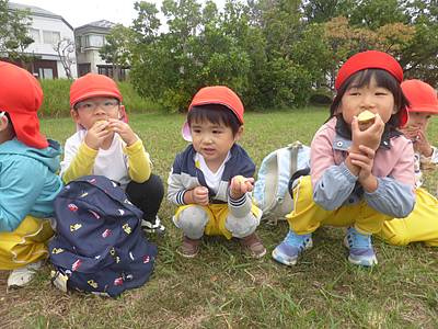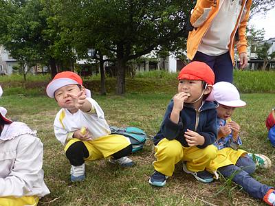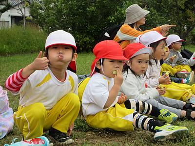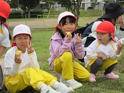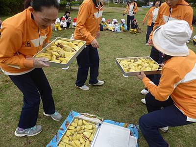 つくし組さんたちもお弁当の前にサツマイモを食べました!
