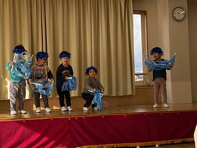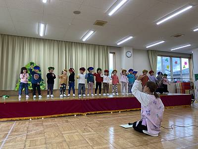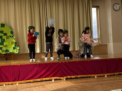 ちゅうりっぷ組は、せかいのはじまりの劇をしました。