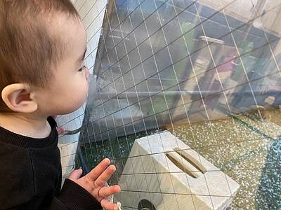 窓にぴったりくっついて観察♡