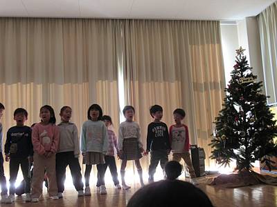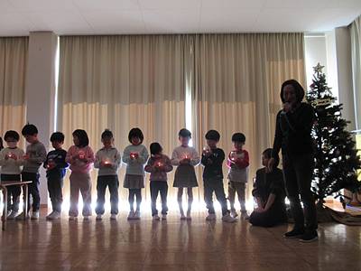 その灯りの下で、降誕劇の最後で歌った♪いちばんはじめのクリスマス♪を、ゆりぐみさんが歌いましたよ。