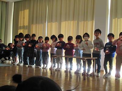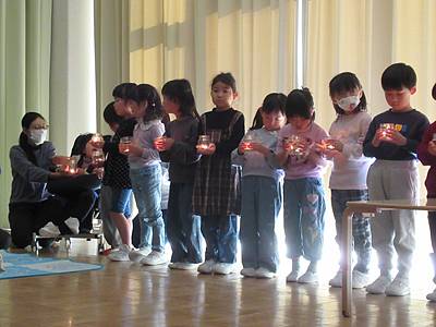 「ろうそくは自分の身体を溶かしながら周りを暖かく明るく照らしてくれます。みんなもひとのためになにかできる人になってほしい」と、園長先生がメッセージをくださいました。