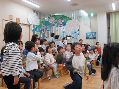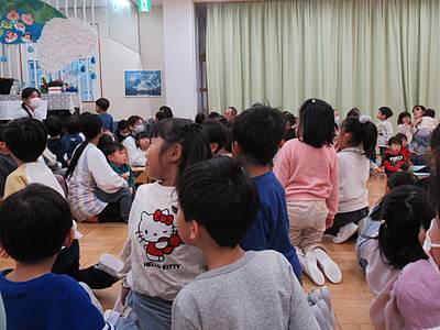 綺麗なキャンドルの火を見て、ホールにいるお友だちみんなが、静かな気持ちになります。