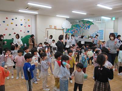 最後に、各クラスで作った、手作りマラカスで踊りました♪