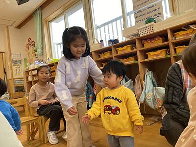 「かわいい~」といってくれたり、「こっちだよ」と優しく教えてくれたりしてつくし組さんの緊張もほぐれてきました!!