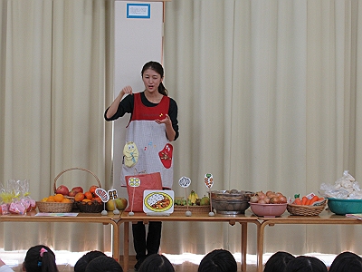 おいしいカレーになるといいね。『カレーライスの歌』を手遊びで歌います。