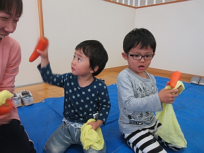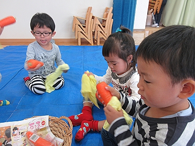 たんぽぽ組さんは にんじんをふきました。